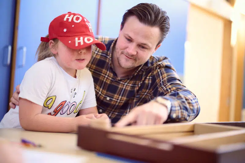 Alle primærvoksne går hver dag ud i klasserne, når børnene har fri. Her mødes de med lærerne, laver aftaler med børnene.